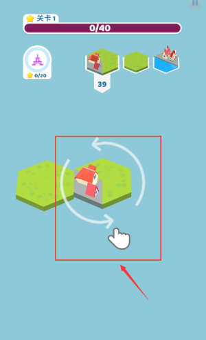 2、点击红框虚线圆圈区域,放置第一个建筑地块。