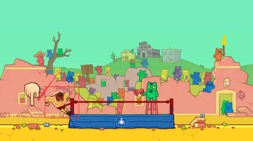 2、拖动红框摔跤手指引线,将对手甩出擂台获胜。