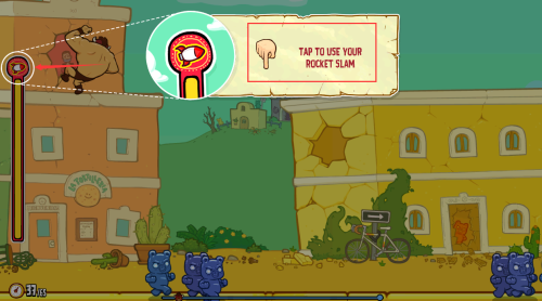 3、点击红框火箭冲击提示,发动特殊技能攻击敌人。