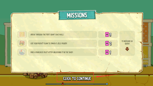 4、点击红框继续按钮,查看并接受新关卡任务。