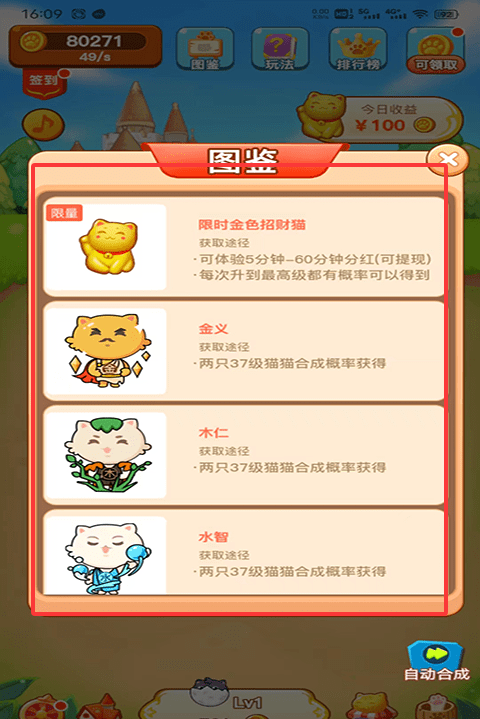 4、查看图鉴可以查看我们可以合成的猫猫。
