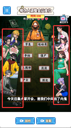 3、将所有人安排到相应的座位上就坐,即可过关。