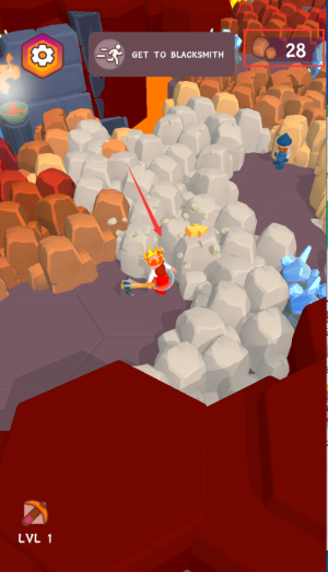 2、按箭头击碎灰色碎石,收集28个金币完成任务。