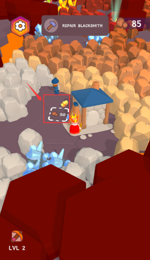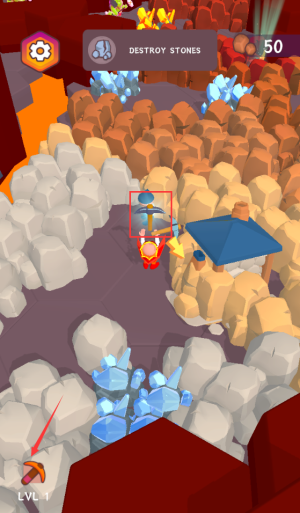3、使用红框蓝镐破坏50块石头,提升角色等级。