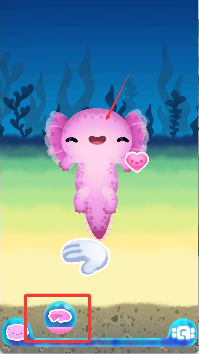 3、我们可以点击下方图示按键抚摸蝾螈,抚摸可以增加亲密值。