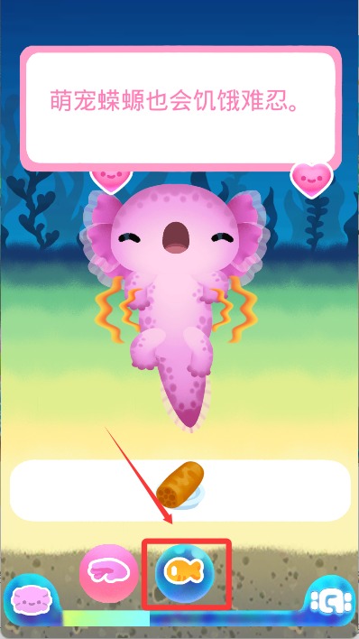 4、蝾螈肚子饿时可以点击下方按键投喂食物。