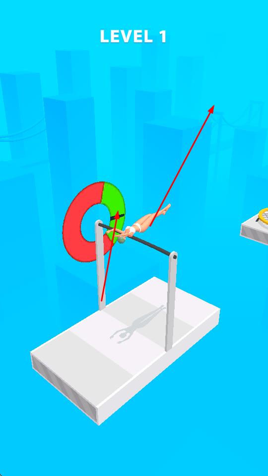 3、在后续关卡中,角色会遇到单杠等障碍物,需要通过精准的操作,让角色抓住单杠,完成旋转等动作,继续推进游戏进程,完成关卡挑战。