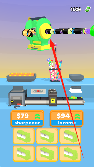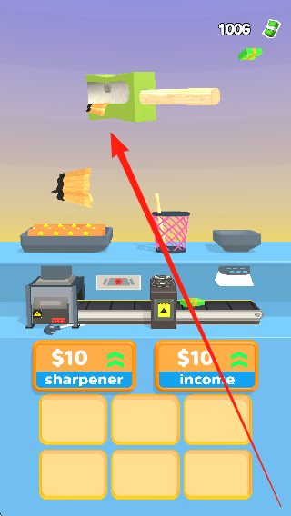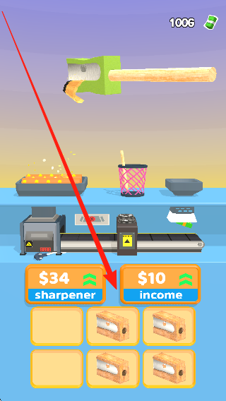 1、进入初始界面,看到基础卷笔刀和待雕刻的铅笔,选择卷笔刀开始熟悉操作,准备雕刻第一个样式。