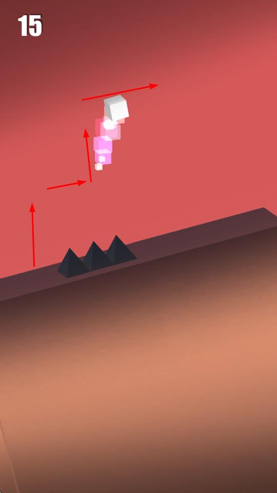1、双击双跳轻按单跳:核心操作是双击屏幕触发双跳,轻按则为单跳,通过控制跳跃力度和次数,让方块越过不同高度的障碍,精准落在目标平台上,操作灵活易掌握。