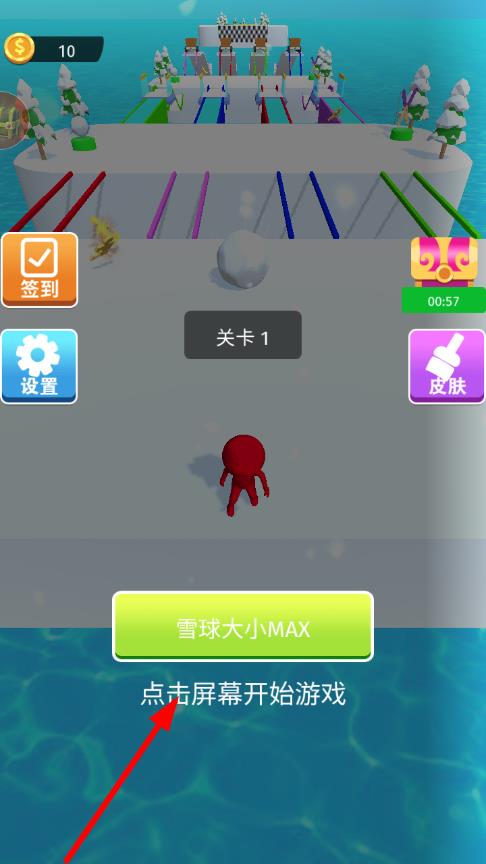 1、进入游戏后选择队伍,控制角色站在初始雪球上,熟悉移动、转向的操作方式,在练习赛道中尝试躲避简单障碍物,开启推雪球之旅。