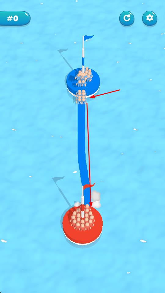 2、连接平台展开比拼:通过操作连接不同颜色的平台,让己方橡皮人沿路线移动至敌方领地,与对手展开人数比拼,一般人数高的一方可获胜并占领该平台。