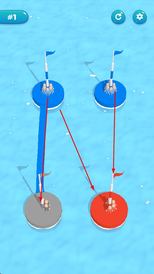 未来水世界冲突是一款以橡皮人为题材的休闲闯关游戏,玩家带领一支队伍在不同颜色的台子间展开战斗,核心目标是通过提升己方人数、占领敌方领土赢得比赛,玩法简单且充满策略性,带来轻松又紧张的竞技体验。
