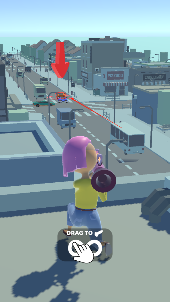 3、高自由度操作:玩家可自由控制少女在城市中移动,瞄准角度与射击时机完全由自己掌握,没有固定路线限制,能按喜好选择最畅快的破坏方式。