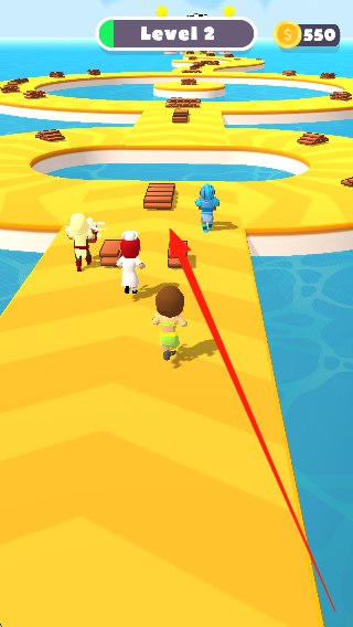 1、进入初始场景,看到基础跑道和简单障碍,控制角色调整状态,开始熟悉跑酷操作并开启闯关。