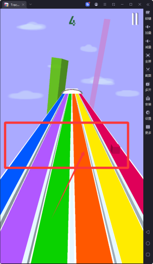 1、玩家需要通过左右滑动屏幕来控制方块移动,确保方块始终在正确颜色的轨道上前进,避免触碰错误轨道。