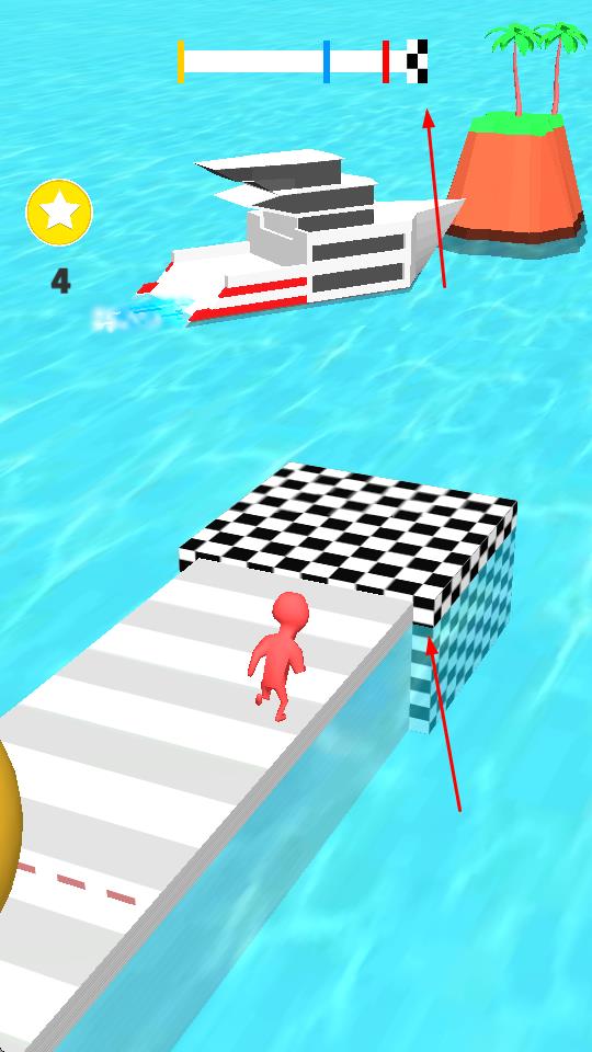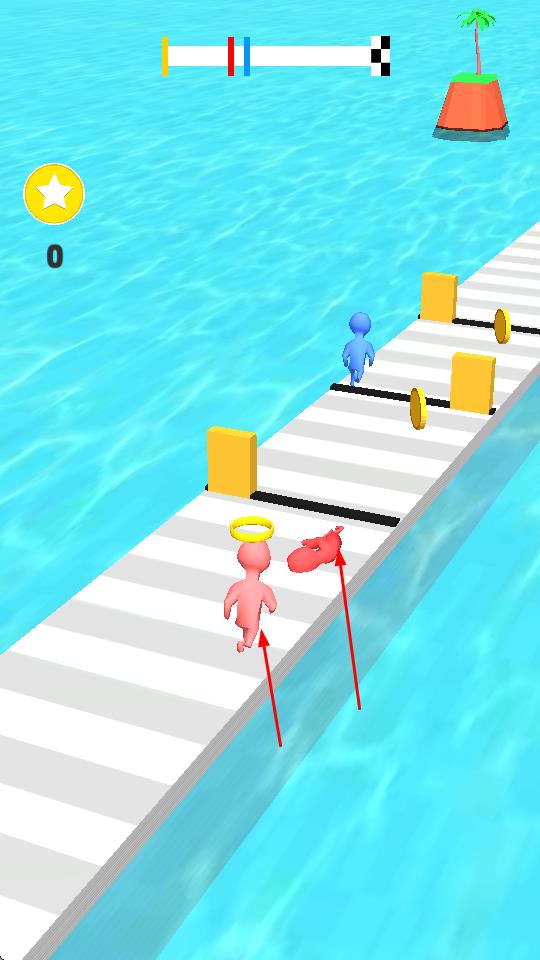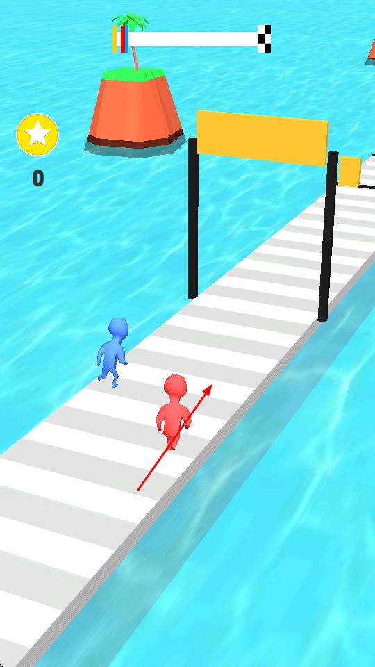 2、在赛道行进过程中,关注上方的进度条,努力推进游戏进程,超越其他蓝色小人,争取领先优势。