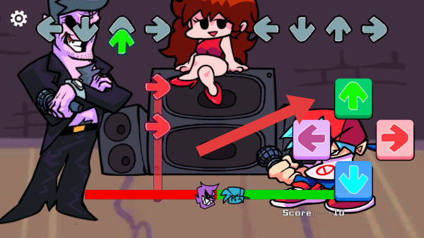 3、图中有两位玩家在进行比拼,根据方向箭头上下左右的提示进行点击相对应的按键,正确者可获得相对应的分数。