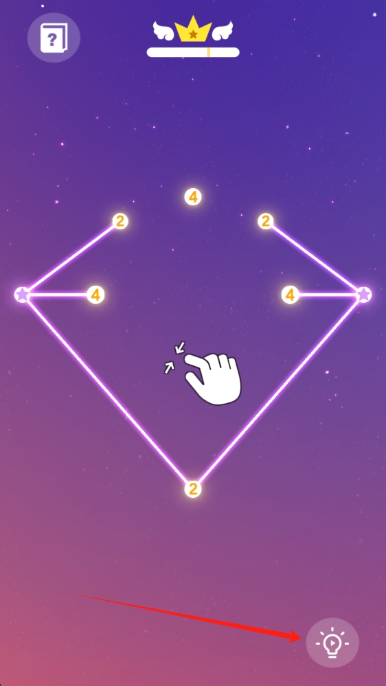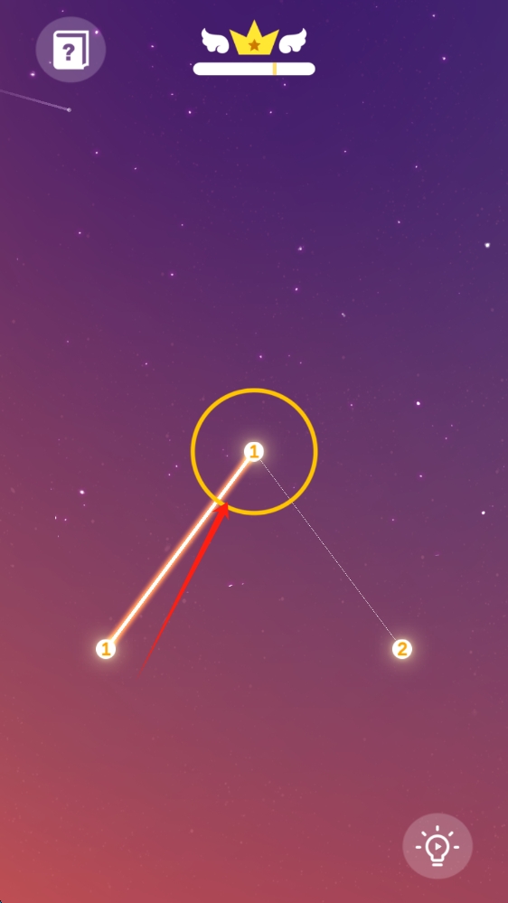 1、游戏连线场景,依据数字提示,依次连接对应光点,完成关卡任务,推进游戏,点击划线。