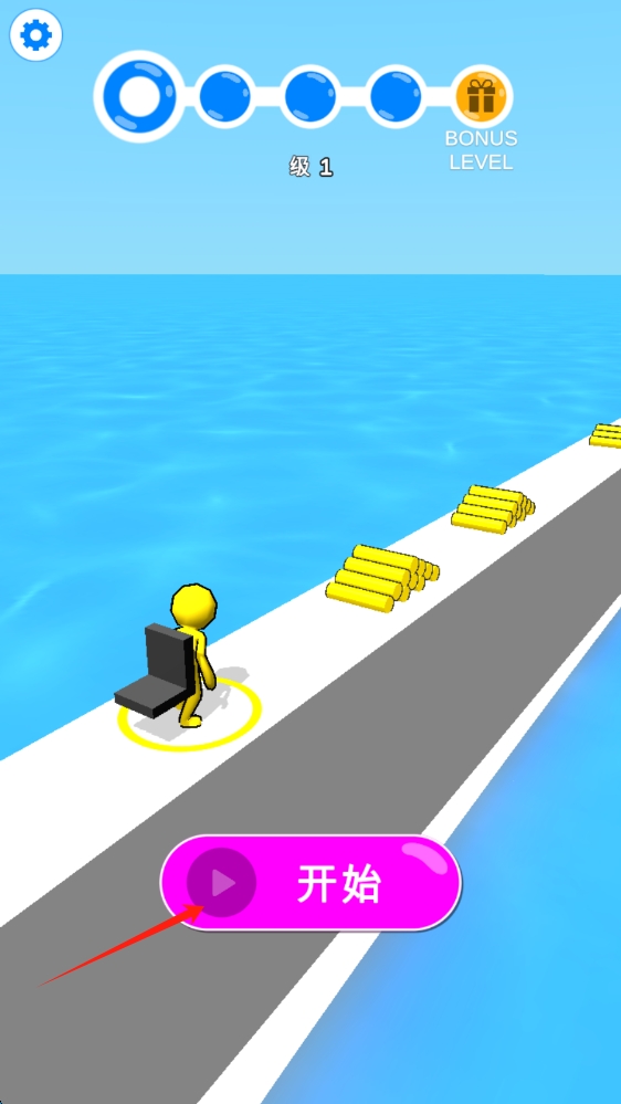 1、游戏启动界面,点击开始,开启休闲挑战,进入游戏世界,迎接第一关,点击开始游戏。