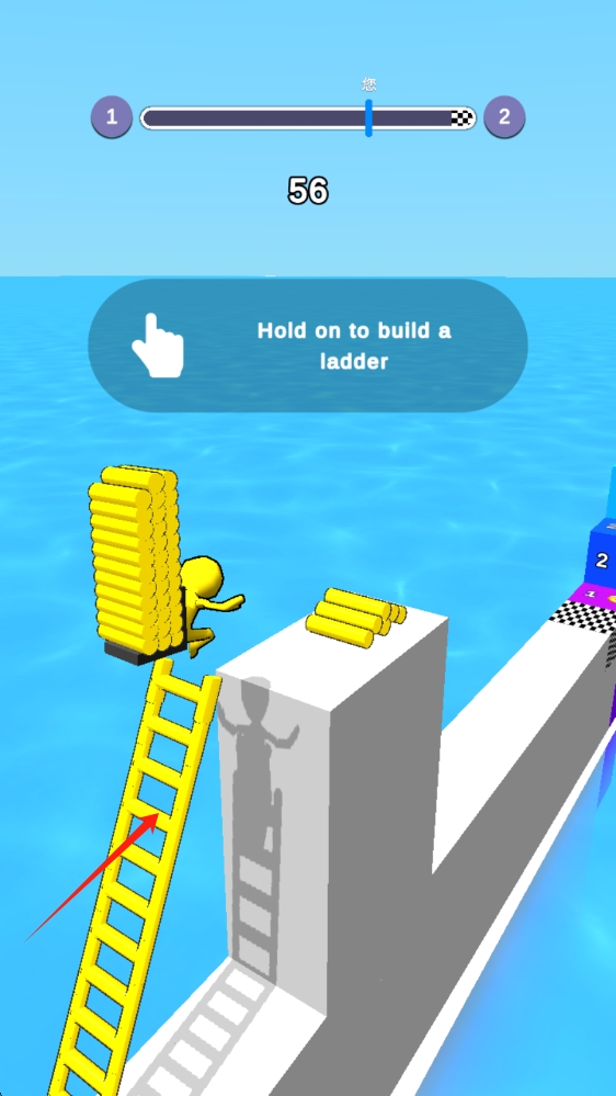 2、进入游戏场景,长按屏幕,搭建梯子,跨越障碍,按规则完成操作,推进游戏,按住升梯子。