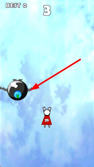 3、观察箭头指向的飞行物,预判轨迹,点击屏幕左右移动角色,躲避撞击,存活得高分。