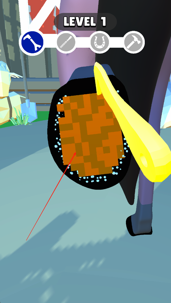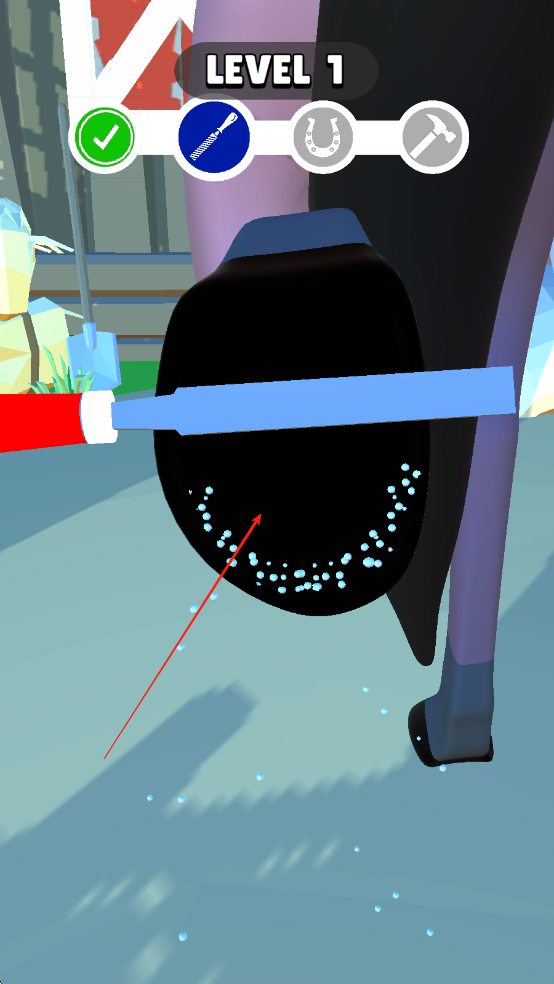 2、第二个环节是用小刮刀将马蹄上的小泡沫清理干净,如果速度慢了,马会不高兴,出现一个愤怒的表情以示提醒。