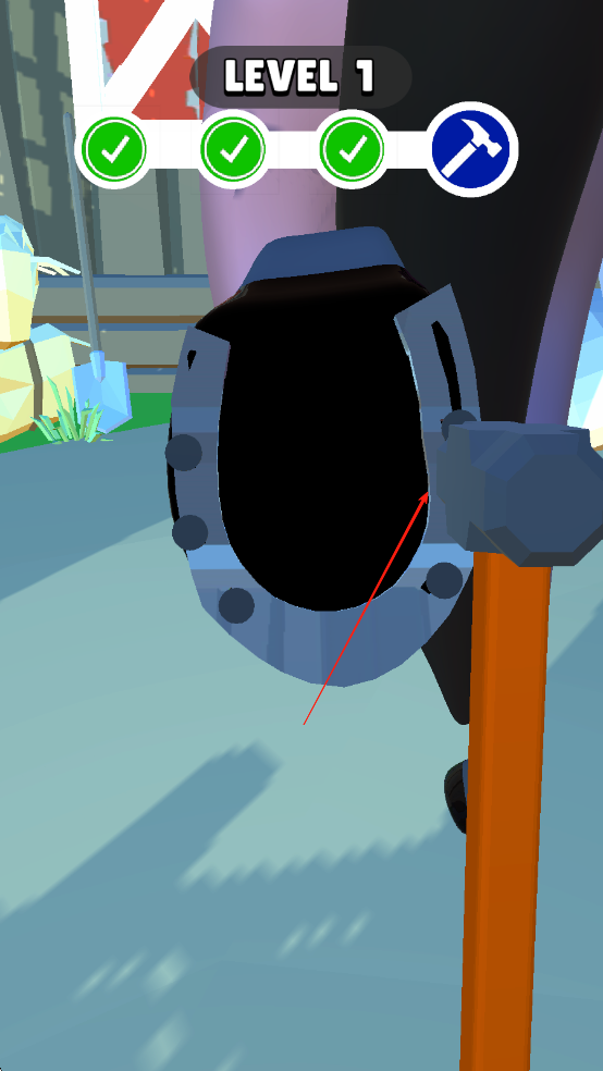 3、将马蹄钉安上后,再用锤子钉紧,即可完成,当马多次愤怒后,会被马踢飞,所以说要时刻注意马的情绪。