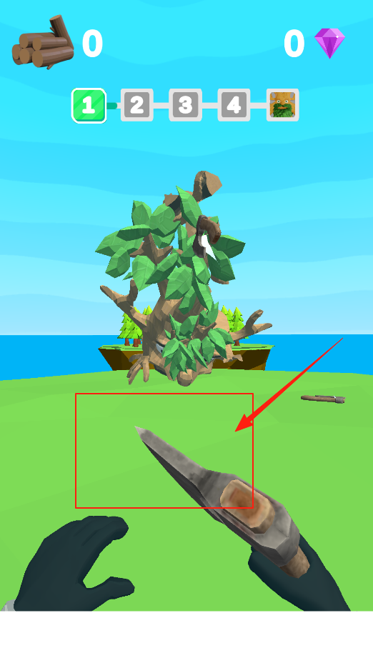 2、进入关卡后,操控斧头,瞄准树怪进行砍伐,通过点击或滑动,控制斧头攻击树怪,使其血量减少,利用精准攻击机制,完成伐木目标。