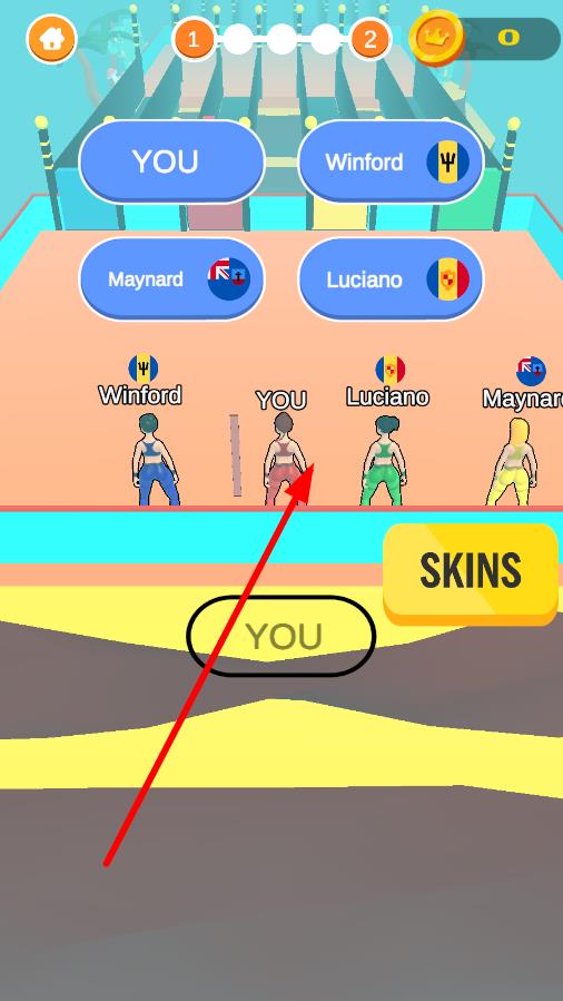1、在赛前选择界面点击代表“YOU”的角色,确认参赛身份,随后进入赛道准备环节,匹配其他对手一同开启竞技。