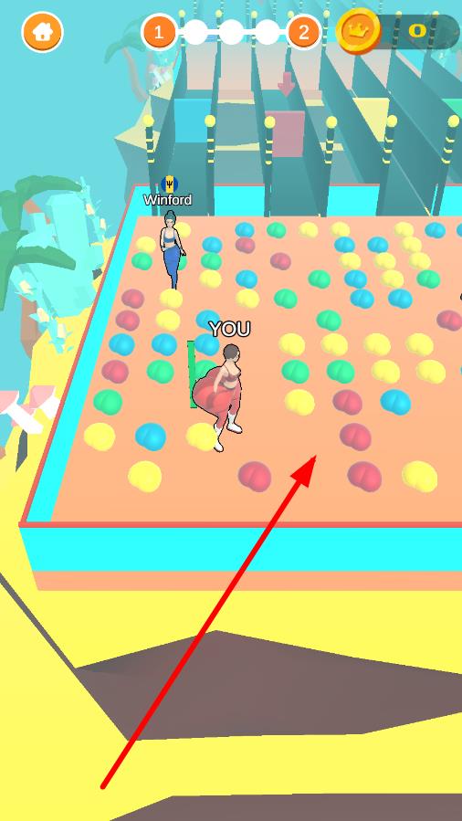 2、比赛开始,在布满彩球的迷宫赛道,通过滑动屏幕操控角色移动,收集与自身相符的颜色,推开障碍。