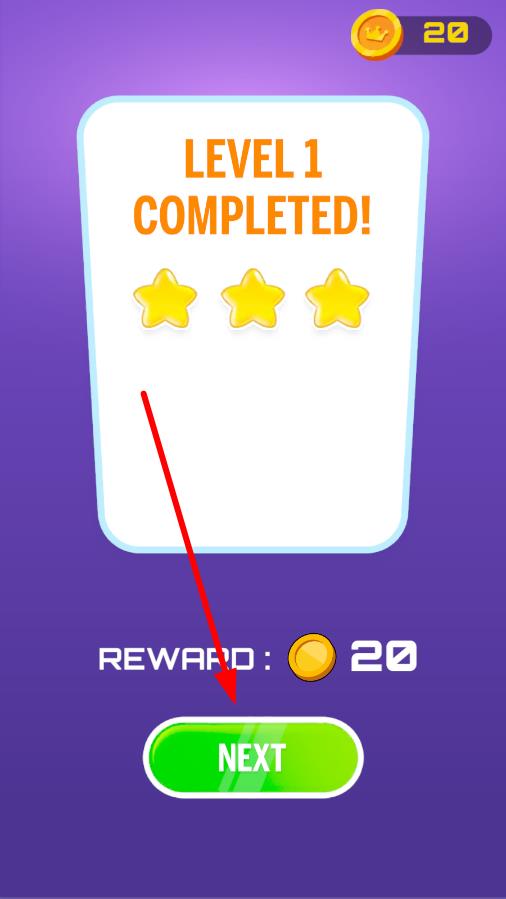 3、成功第一名抵达终点后,界面显示“LEVEL 1 COMPLETED!”,点击“NEXT”按钮,即可进入下一关,挑战更复杂的迷宫赛道。