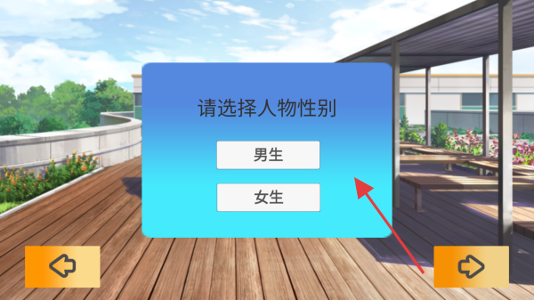 1、进入游戏后,首先会看到请选择人物性别的界面,根据自己的喜好点击男生或女生按钮,完成人物性别的选择。