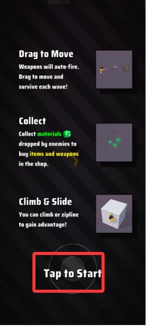 3、之后,可以看见下图这个简易的游戏攻略,点击tap to start进入游戏。