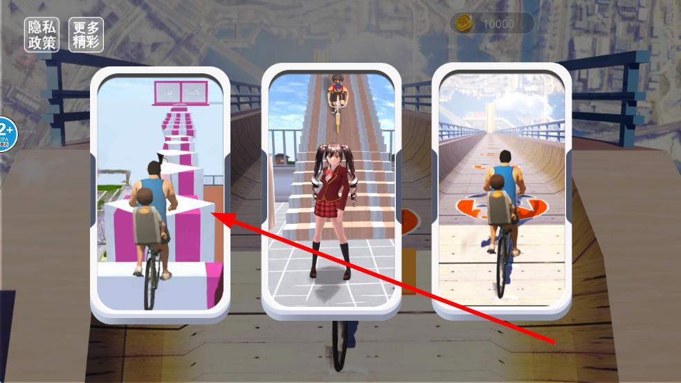 3、完成当前赛道后,回到关卡选择界面,点击新解锁的赛道卡片,即可进入不同场景的高空骑行挑战,继续向上冲刺。