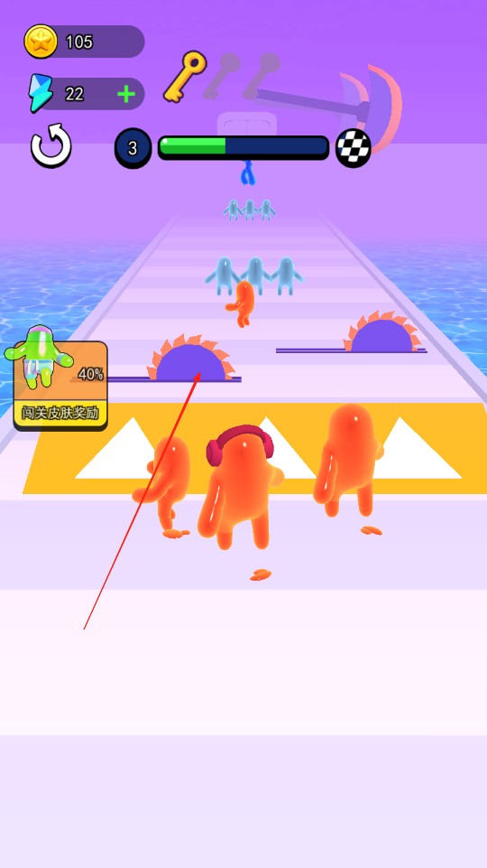 2、收集软糖的同时,注意躲避前方的障碍,碰到障碍会切割超人的一部分软糖,经过加速跳的时候会一跃而起,越过障碍。