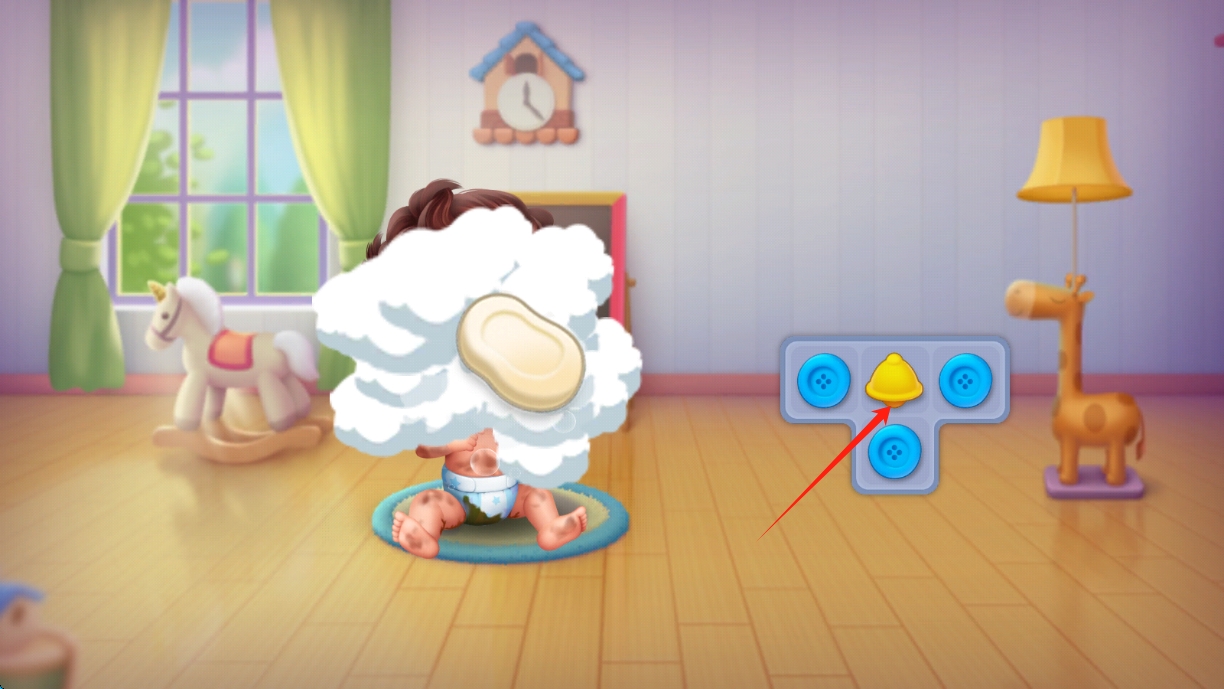 3、育儿场景中,点击黄色按钮,进行育儿操作,照顾宝宝,完成游戏任务,推进游戏进度,点击使用道具。