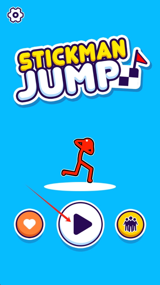 1、在Stickman-Jump启动界面,点击中间播放按钮,开启火柴人跳跃冒险,进入游戏世界,点击开始游戏。