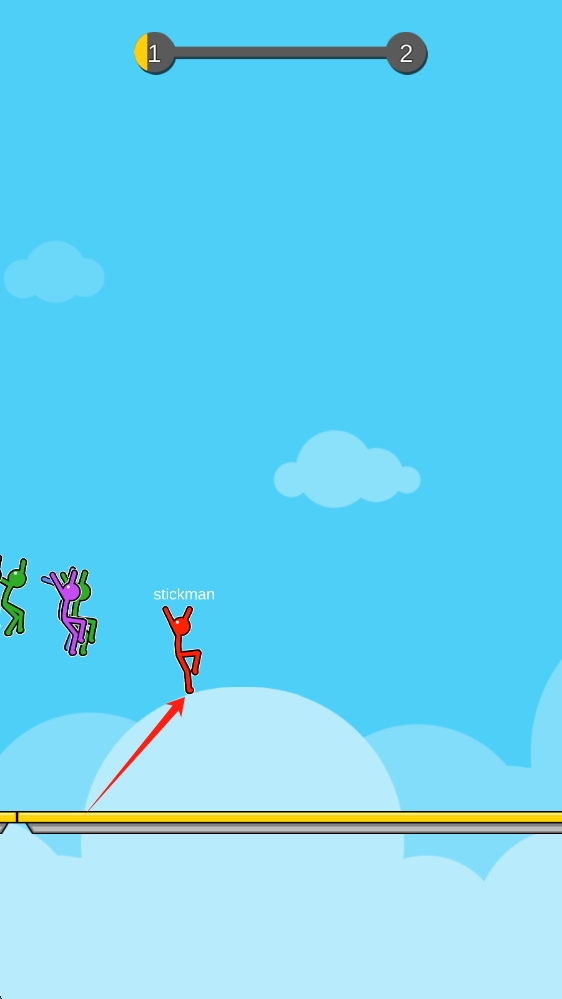 2、时机把控跳跃:操作虽简单,只需点击屏幕控制火柴人跳跃,但需找准时机连续跳跃,才能顺利到达最终目的地。