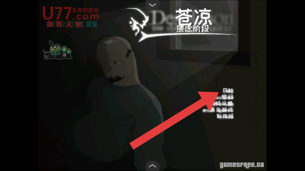 1、处于焦虑阶段,有开始、密码、读取数据、更多游戏、制作组等选项,点击开始方可进入。