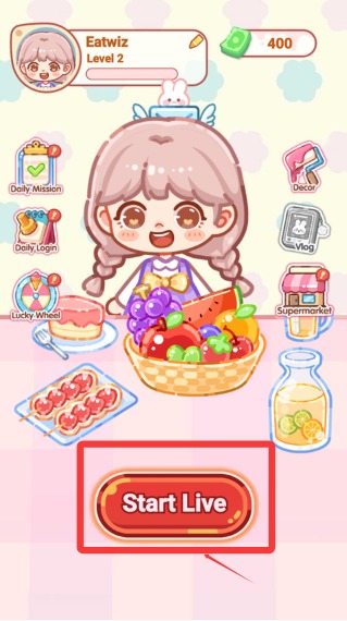1、进入游戏后点击屏幕下方的start live开播。