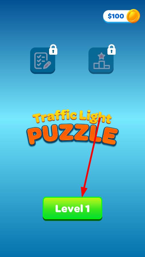1、进入游戏界面,点击“Level1”绿色按钮,开启第一关,了解基本的游玩规则,准备指挥车辆通行。