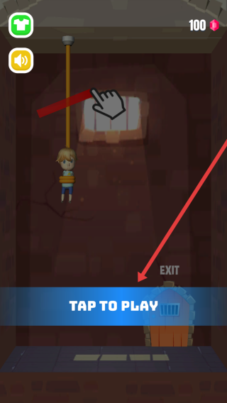 1、点击TAP-TO-PLAY按钮开始游戏,需想办法切断绳索,让被困角色脱离危险并抵达EXIT。