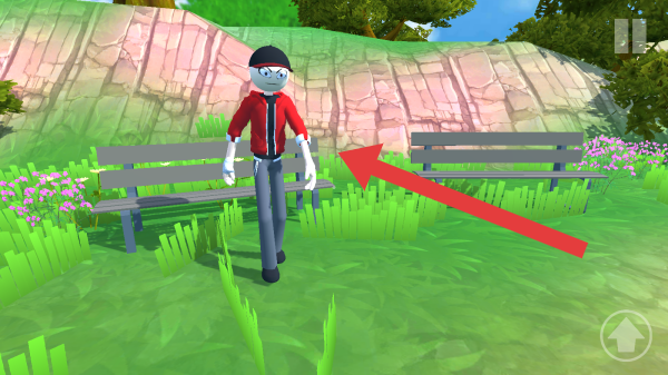 2、开始你会来到一个没什么人的草地上,左下角按键可以控制自己移动,右下角是跳跃,滑动右侧屏幕就可以调整视角方向,查看周边环境。
