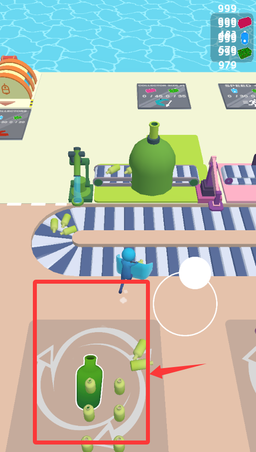 4、走到这里推这些瓶瓶罐罐过去转送带。