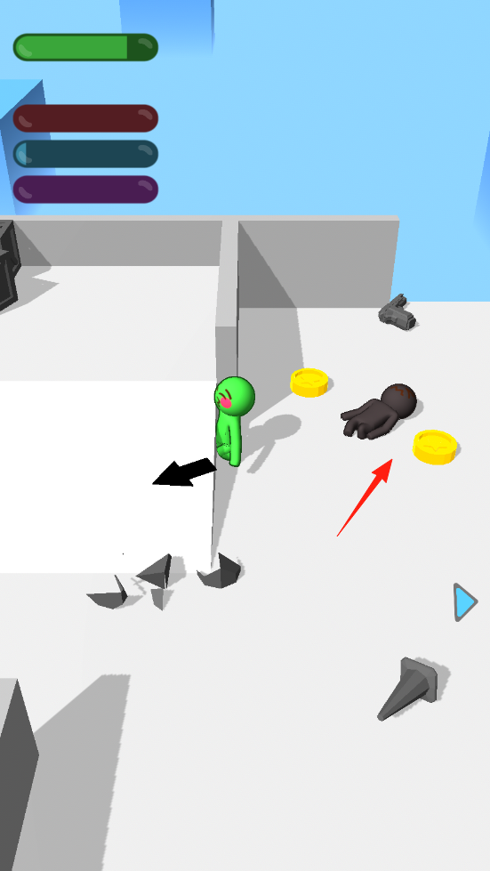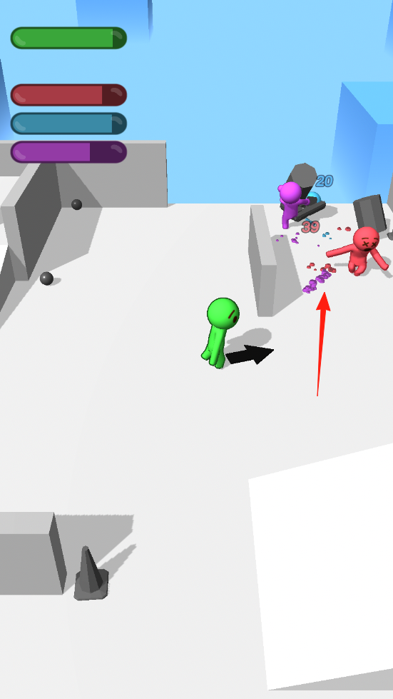1、彩色火柴人绿、红、紫、蓝等,可攻击、移动、破坏场景如撞碎墙体。
