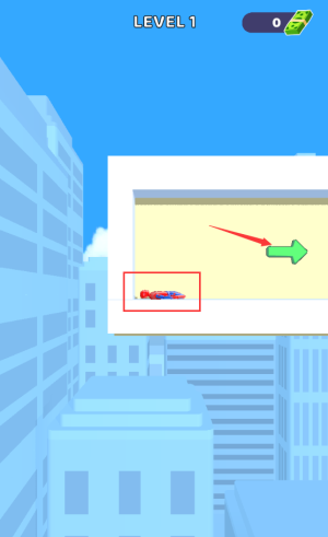 4、引导蜘蛛侠向箭头处,使用蛛网完成第二关。