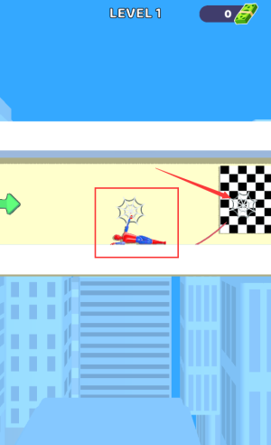 2、操控红框超级英雄,飞向箭头黑白格目标区域。