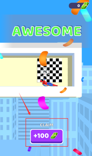 3、点击红框CLAIM按钮,领取100金币通关奖励。