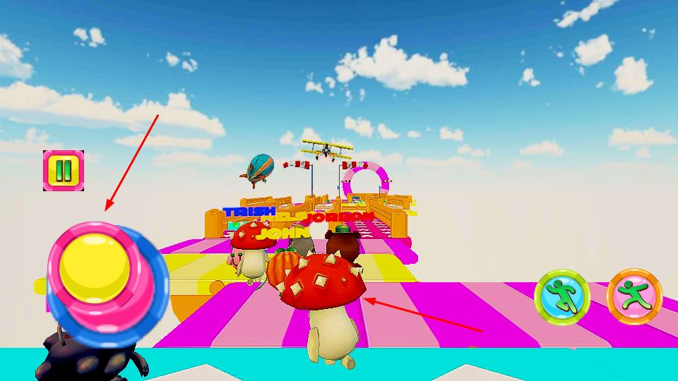 2、左侧的虚拟摇杆用于控制角色移动方向,右侧的动作按键可触发特殊技能,带着角色躲避障碍、向着终点冲刺,每一步都考验反应与操作技巧。