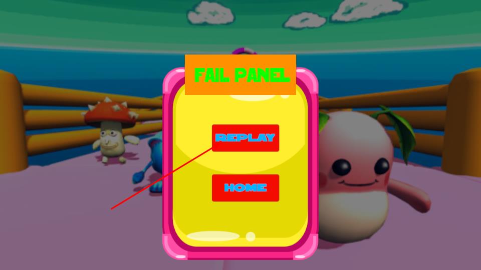 3、若比赛失利,会弹出FAIL PANEL提示框,此时可选择REPLAY按钮重新挑战,调整策略再试一次;也能点击HOME按钮回到初始界面,争取下次顺利抵达终点。